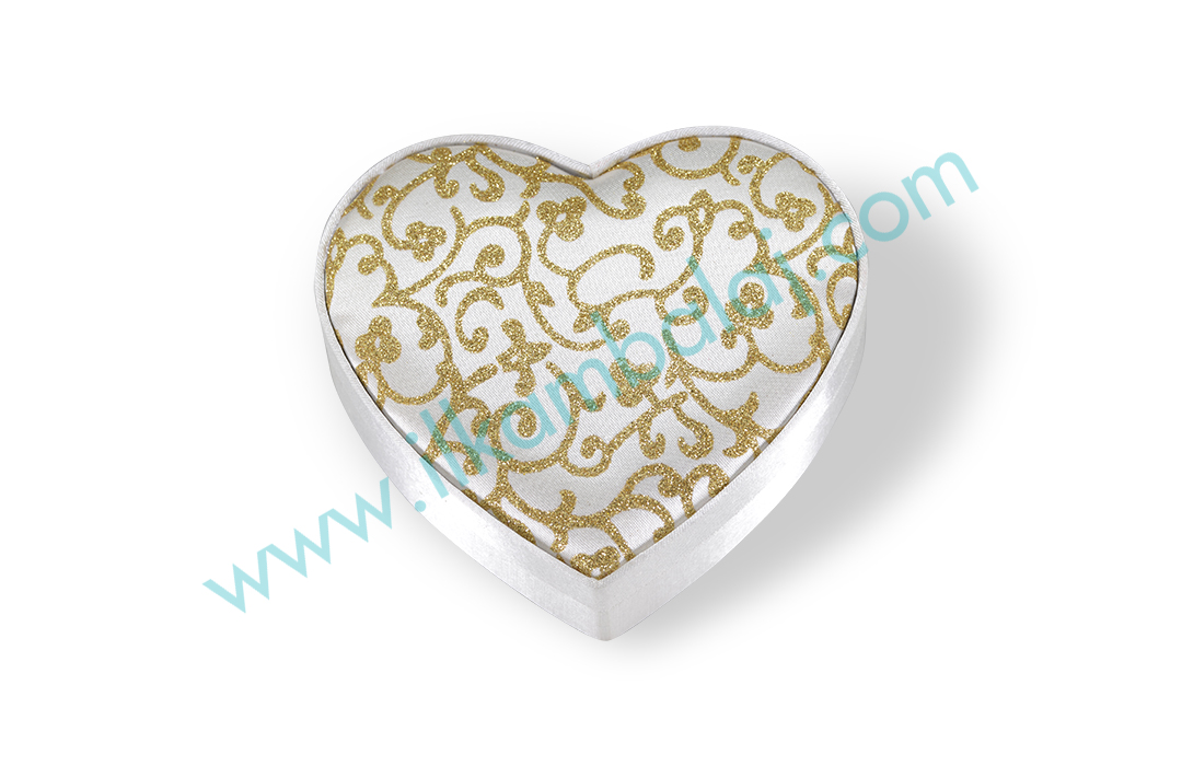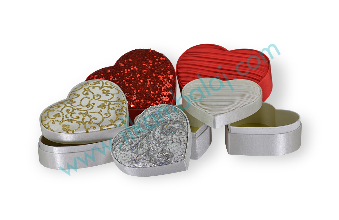 Kalp şeklinde, saten kumaş kaplı çikolata kutuları tercihinize göre farklı ölçü ve kumaşlarla hazırlanabilmektedir.